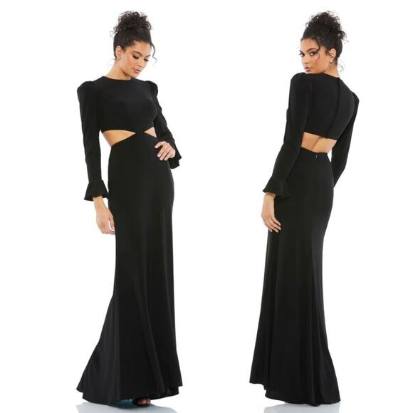 Mac Duggal 67944 Long Sleeve Column Gown Dress black size 6 UB