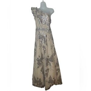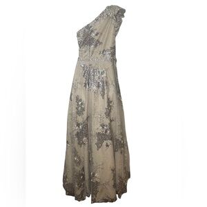 Mac Duggal 67960 One Shoulder Beaded Lace Gown Mocha Silver Sequin Size 16 NWT