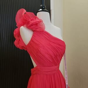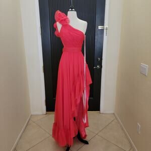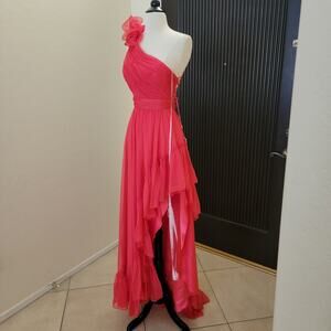 Mac Duggal 67989 Cherry 2 Chiffon Ruffled One Shoulder Asymetrical Gown Dress