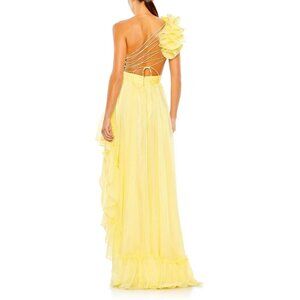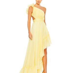 NWT | Mac Duggal Butter Yellow Ruffled One Shoulder Asymmetrical Maxi Gown 10