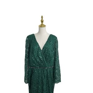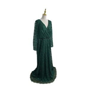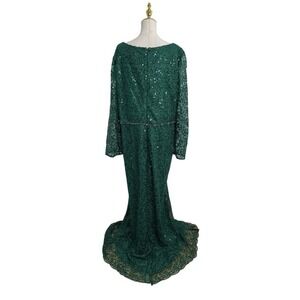Mac Duggal #68016 Emerald Green Beaded Embroidery Illusion Sleeve Dress Size 22