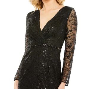 Mac Duggal 68016 NWOT EMBELLISHED WRAP OVER LONG SLEEVE GOWN