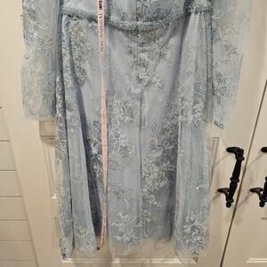 Mac Duggal 68020 Blue Embellished Lace Long Sleeve Beaded Midi Dress Size 12