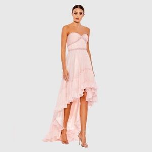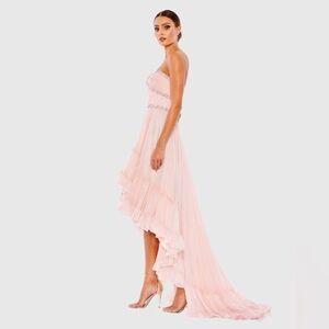 Mac Duggal 68096 Pink Beaded Ruffle High Low Gown