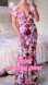 Stand out in this wildflower print gown with ruffled sleeves, a neckline that shows your décolletage, a central ring detail, and sultry side cutouts, blending style and allure effortlessly.