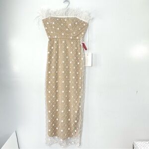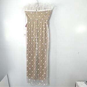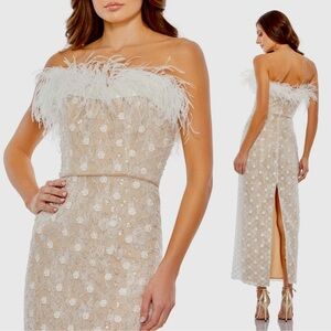 Mac Duggal 68140 Embellished Feather Strapless Column Nude/White Dress, Size 4