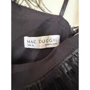 Mac Duggal 68147 One Shoulder Draped Length Dress Feather Trim Black Size 10 NWT