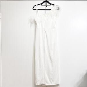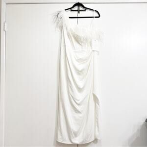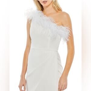 Mac Duggal 68147 White Feather Trim One Shoulder Dress Size 12
