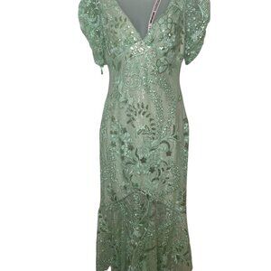 Mac Duggal 68266 Mint Beaded Lace Embroidered Midi Dress Size 4 NWT