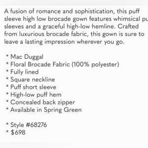 Mac Duggal #68276 Floral Print Puff Sleeve High Low Brocade Gown Size 12 NWT