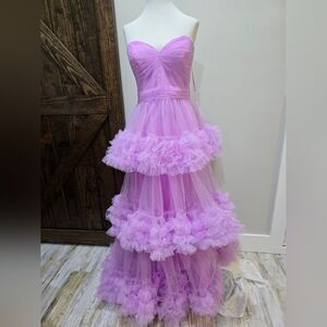 Mac Duggal 68490 Strapless Ruffle Tulle Tiered Gown NWT sz 12 Orchid Purple