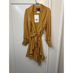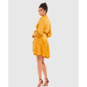 Mac Duggal 70135 Asymmetric Mini Wrap Dress Sz 6 Mango NWTs $398 Wedding Guest