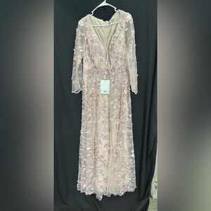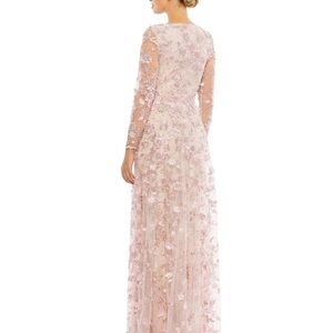 Mac Duggal 70224 NWOT FLORAL APPLIQUE LONG SLEEVE ILLUSION GOWN