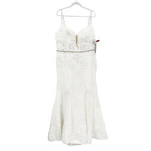 Mac Duggal 79082 Ivory Embroidered Sleeveless Plunge Neck Trumpet Gown