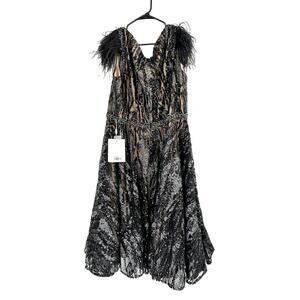 Mac Duggal 79339 Black Embellished Feather Cap Sleeve Midi Dress Size 18 New
