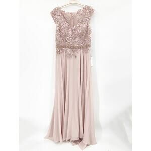 Mac Duggal 79365 Pink Embellished Beaded Chiffon Formal Dress Size 10 NWT