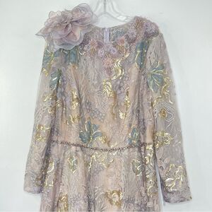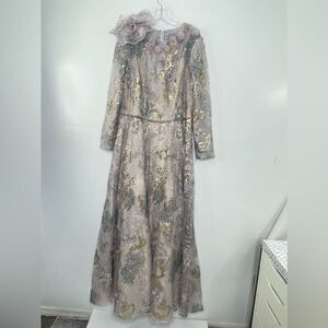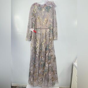 Mac Duggal 79374 Rose Applique Floral Embroidered Beaded Lace Maxi Gown, Size 16