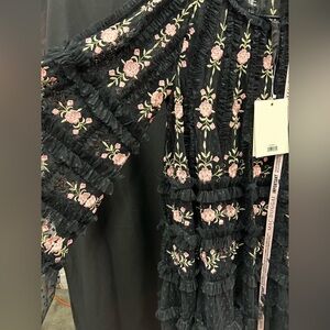 Mac Duggal 8031 NWT Embroidered Long Flare Sleeve Mesh A-Line Dress
