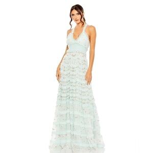 Mac Duggal 8037 NWT V-neckline Cross Back Ruffle Detail A-line Dress