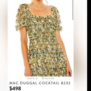 Mac Duggal #8232 Yellow Green Short Sleeve Ruffle Tea Length Dress Sz 10 NWT