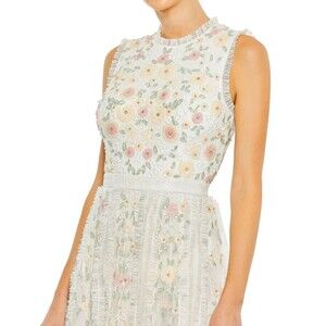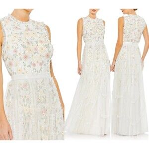 Mac Duggal 9137 Embroidered High Neck Sleeveless Floral Ruffled Gown NWT