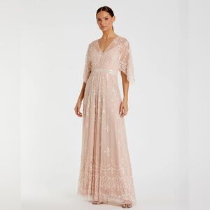 Mac Duggal 9144 NWT V Neck Flounce Sleeve Embellished Mesh Gown in Blush