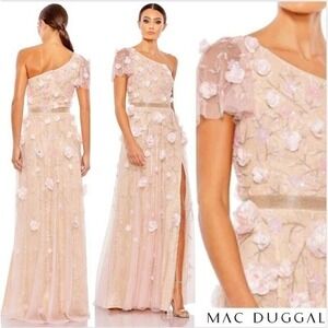 Mac Duggal 9165 Floral Embellished One Shoulder A Line Gown Size 4 Blush Pink