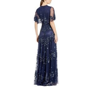Mac Duggal 9192 Size 2 Blue Sequined High Neck Flutter Sleeve A Line Gown Dress