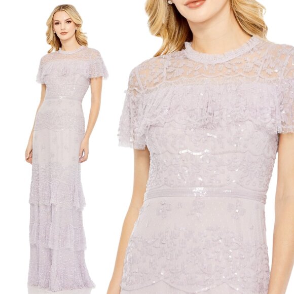 Mac Duggal 9195 Womens Size 14 Lilac Purple Ruffle Tiered Gown Maxi Dress