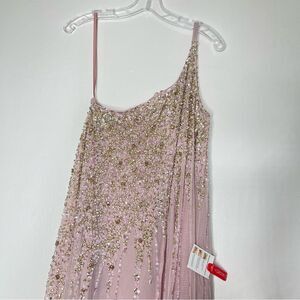 Mac Duggal 9224 Size 4 One Shoulder Embellished Trapeze A-Line Gown, Tan/Blush