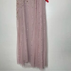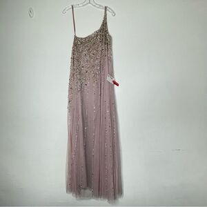 Mac Duggal 9224 Size 4 One Shoulder Embellished Trapeze A-Line Gown, Tan/Blush