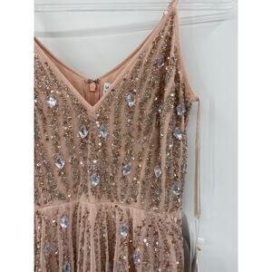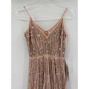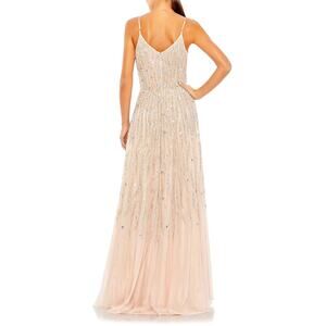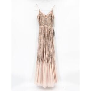 Mac Duggal 93566 Peach Sequin Tulle Sleeveless V-Neck Formal Gown Size 0 NWT