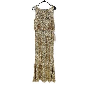 Mac Duggal 93645 Gold Sequined Sleeveless High Neck Formal Cocktail Gown Size 6