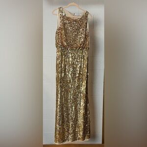 Mac Duggal 93645 Sequin Sleeveless High Neck Gold