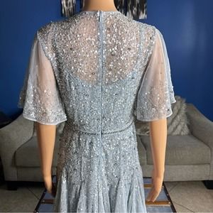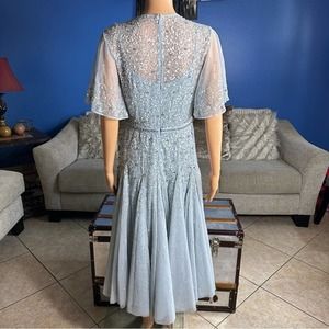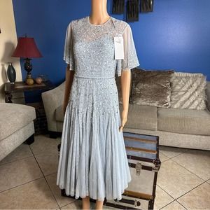 Mac Duggal 93655 Powder Blue Cape Sleeve Beaded Tea Length A-Line Dress 6 NWT