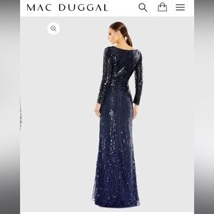 Mac Duggal 93660 Sequined Faux Wrap Long Sleeve Gown