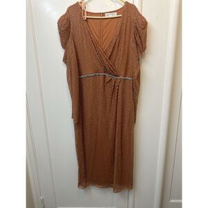 Mac Duggal 93674 Copper Cocktail Beaded Dress Sz 18 MIDI Puff Sleeves NWTs $598