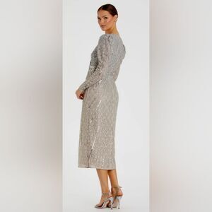 Mac Duggal 93676 Mac Gray Beaded Lace Long Sleeve Midi Dress NWT size 18 Taupe