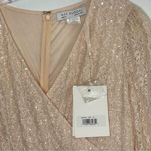 Mac Duggal 93679 Beaded Lace Long Sleeve Wrap Over Gown, Light Rose, Size 12