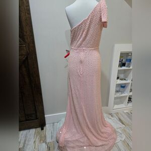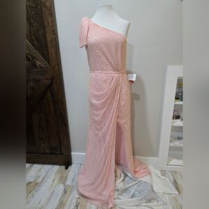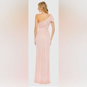 Mac Duggal 93735 Pearl Embellished Soft Tie One Shoulder Gown NWT size 10 Pink