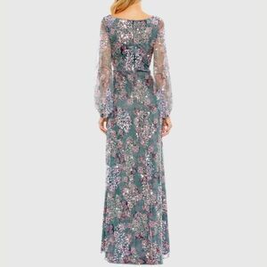 Mac Duggal 93750 Size 10 Blue Grey Pink Floral Long Sleeve Gown Maxi Dress