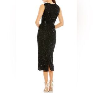 Mac Duggal 93758 Black Geometric Beaded Midi Cocktail Dress Size 16 NWT