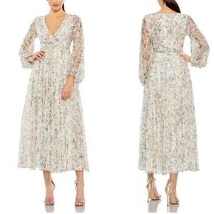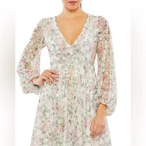 Mac Duggal 93788 Floral Beaded Sequin Midi Tea Length Dress SZ 4 NWT