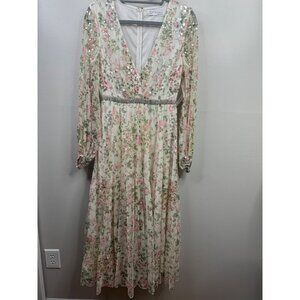 Mac Duggal Floral Beaded Sequin Midi Tea Length Dress