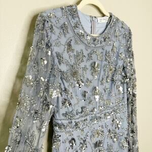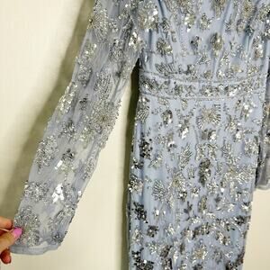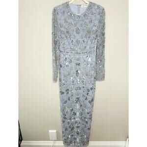 Mac Duggal 93939 Slate Blue High Neck Embellished Long Sleeve Column Gown 8 $798