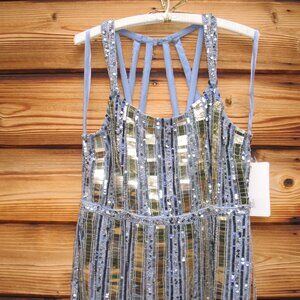 NWT Mac Duggal HALTER NECK Mirror EMBELLISHED DETAILED BACK GOWN