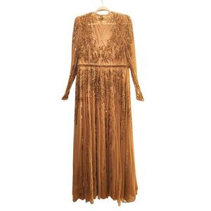 Elevate your elegance with this enchanting dress featuring an embellished mesh. The high neckline and long puff sleeves create a sophisticated silhouette, adding a timeless touch to your ensemble. Partially lined through the bodice and fully lined through the skirt, with sheer unlined sleeves, this dress strikes the perfect balance between allure and modesty. The beaded waist detail accentuates your figure, while the intricate floral detailing, composed of hand-stitched sequins and beading, adds a touch of artistic flair. Shop now and embrace the enchanting allure of this captivating style. Pictures don't do justice to this dress, gorgeous embellishment and we've got it at the best price for you.