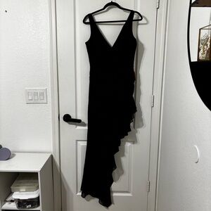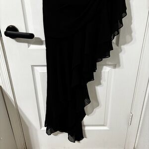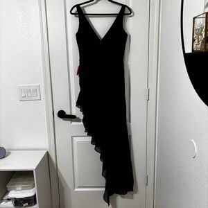 Mac Duggal Asymmetrical Ruffled V-Neck Chiffon Dress Size 6 Black