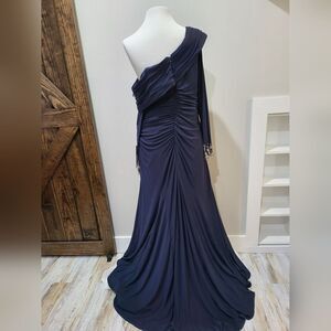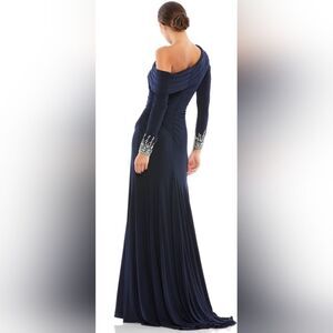 Mac Duggal BEADED CUFF DROP SHOULDER FAUX WRAP GOWN NWT size 4 blue 12231