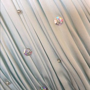 🧚‍♀️This baby blue ball gown has ruffles and bling. It’s a one shoulder dress and it has a corset in the back🧚‍♀️